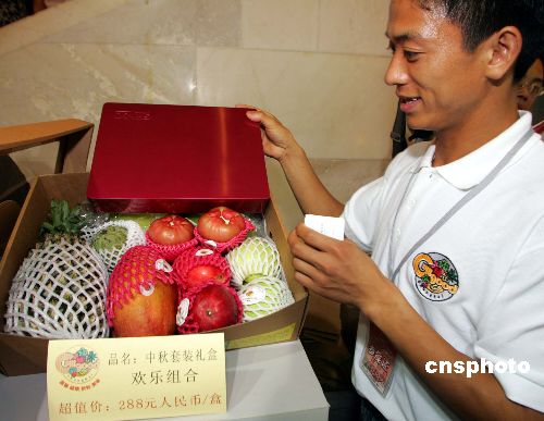 七月二十日,在上海舉行的臺灣農(nóng)產(chǎn)品展銷會上,精明的上海臺商及時把握商機,將臺灣水果與月餅組合成中秋禮盒,及時地搭上“銷售快車”,成為展會亮點之一。作者:潘索菲