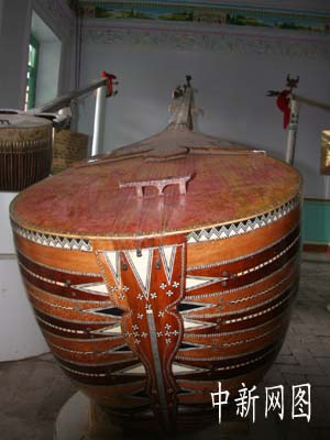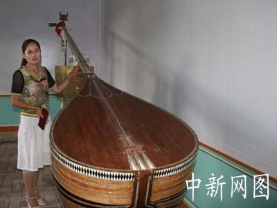 新疆喀什疏附縣吾庫薩克鄉(xiāng)中國新疆民族樂器村,鎮(zhèn)村之寶全長3.39米的熱瓦甫、4.7米的都塔爾、4.95米的沙塔爾三件巨型樂器,已經申報吉尼斯紀錄.