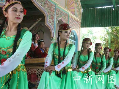 圖為疏附縣文工隊(duì)的歌舞演員在表演.