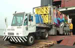 環(huán)球嘉年華首批設(shè)備運(yùn)輸車隊(duì)由56輛車組成,運(yùn)送20呎和40呎兩種集裝箱共278個,另有71個異型貨柜。7月10日17時,這些設(shè)備在天津港裝車出發(fā),走京津塘高速公路到達(dá)北京,于當(dāng)天23時進(jìn)入2005北京環(huán)球嘉年華6萬平米的活動場地。