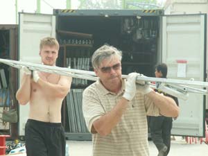 在現(xiàn)場(chǎng)忙碌的不止是員工,纜車吊車也一刻都不得閑