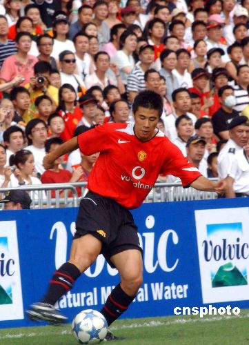 中國球員董方卓隨同曼聯(lián)進(jìn)行“亞洲之旅”,23日在香港大球場與香港隊作友誼賽。目前他被球隊租借到比利時安特衛(wèi)普隊效力。作者:譚達(dá)明