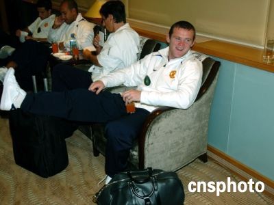 英超豪門曼聯(lián)隊昨日抵達北京,開始他們的中國之行。在未來的幾天中,他們將與中國的球迷以及媒體見面,并將與北京現(xiàn)代隊進行一場友誼賽。圖為曼聯(lián)球星魯尼笑對首次中國之行。