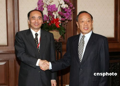 中國(guó)外交部長(zhǎng)李肇星七月二十五日在北京釣魚臺(tái)國(guó)賓館會(huì)見并宴請(qǐng)前來出席朝核問題六方會(huì)談的日本外務(wù)省亞大局長(zhǎng)佐佐江賢一郎。作者:毛建軍