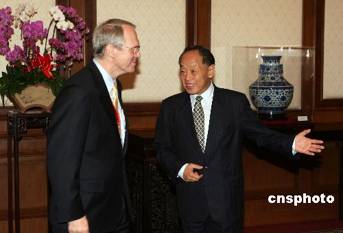 中國(guó)外交部長(zhǎng)李肇星七月二十五日在北京釣魚臺(tái)國(guó)賓館會(huì)見并宴請(qǐng)前來出席朝核問題六方會(huì)談的美國(guó)國(guó)務(wù)院助理國(guó)務(wù)卿希爾。作者:毛建軍