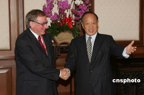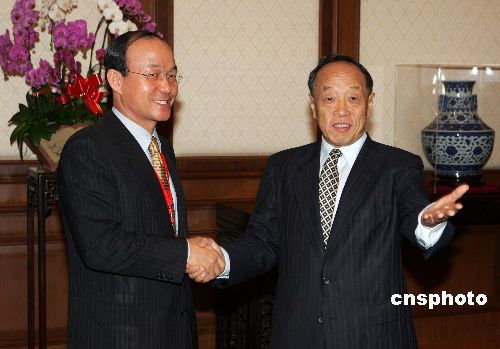 中國(guó)外交部長(zhǎng)李肇星會(huì)見并宴請(qǐng)前來出席朝核問題六方會(huì)談的韓國(guó)外交通商部次官補(bǔ)宋旻淳。作者:毛建軍