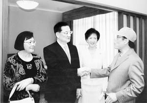 看了這兩幅畫后,連主席夫婦十分欣賞和感謝,同時熱情邀請我方便的時候去臺灣舉辦畫展。怕耽誤連主席的行程,我們很快即告辭離開飯店。連主席夫婦一直把我們送到門口,依依惜別。
