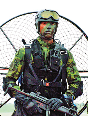 三、軍演現(xiàn)場同時展示了空特戰(zhàn)力包括城市突擊、雪地突擊、高空動力傘等各種特戰(zhàn)傘兵,凸顯臺軍除消極防守外、也具備敵后主動反制能力的用意相當明顯;