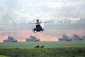中新網(wǎng)7月28日電 臺軍“漢光21號”演習27日在臺中空軍清泉崗基地舉行,除陳水扁、呂秀蓮和謝長廷都到場外,美國國防情報局官員及日本退役人員也出現(xiàn)在觀禮臺上。