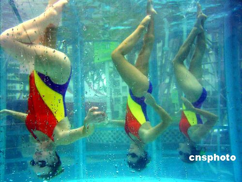 “黃埔夏日跳躍水世界”預(yù)演于29日在香港舉行,多位澳洲好手呈獻(xiàn)世界級花式跳水表演。圖為優(yōu)美花式韻律泳表演。作者:彭兆輝