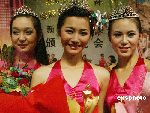 七月三十一日晚,“龜茲杯”2006國(guó)際旅游小姐新疆區(qū)總決賽在南疆阿克蘇市舉行,四十名入圍佳麗在決賽上展示泳裝、民族服飾以及晚裝,經(jīng)角逐來(lái)自烏魯木齊市的選手付苓獲得大賽冠軍(中)、梁爽獲得亞軍(右)、維吾爾族選手妮魯拜爾獲得季軍。作者:錢興強(qiáng)