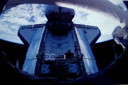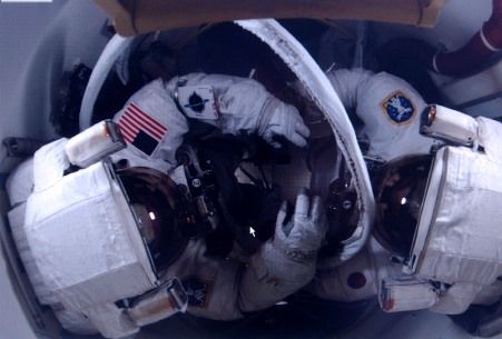 中新網(wǎng)洛杉磯八月一日電(記者 賈國(guó)榮)美國(guó)宇航局今天公布的最新太空?qǐng)D片,展現(xiàn)太空中受傷的合金巨鳥(niǎo)----發(fā)現(xiàn)號(hào)航天飛機(jī),和兩名宇航員完成第二次太空行走任務(wù),回到艙位的奇特形象。