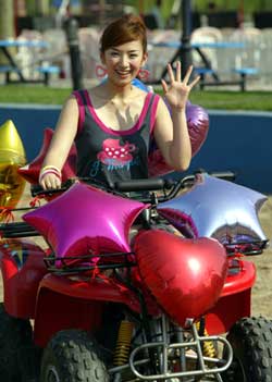 發(fā)布會一開始,黃奕身著充滿夏日風(fēng)情的迷你裙、騎沙灘摩托車緩緩駛進(jìn)了現(xiàn)場,讓眾人眼前一亮。隨后,她分別演唱了專輯中的快慢兩首主打歌《停不了》和《第一個夏天》。