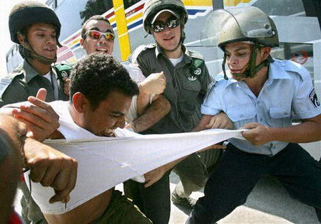 扮演拒不撤離的猶太定居者的警察被關(guān)進鐵籠