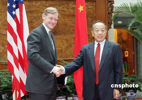 中國外交部長李肇星八月二日在北京會(huì)見來訪的美國常務(wù)副國務(wù)卿佐利克。作者:毛建軍