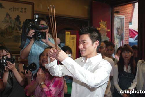 中新網(wǎng)8月5日電 據(jù)香港媒體報道,劉德華的國語大碟《再說一次我愛你》昨日全球發(fā)行,他專誠到臺北月老廟拜神,更為歌迷求了過千條月老紅線,打算于簽名會時送給fans。