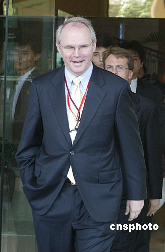 圖:希爾微笑面對第四輪六方會談進(jìn)入尾聲