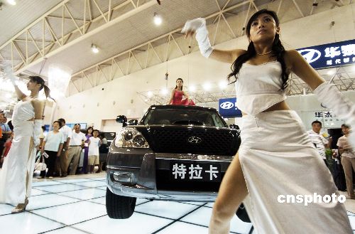 第四屆長(zhǎng)春國(guó)際汽車博覽會(huì)八月五日正式開展。各汽車廠商為吸引關(guān)注,均大打香車美女牌。作者:吳兆飛