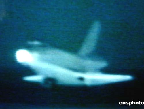 真是“起飛時(shí)難降也難”,美國(guó)愛德華茲空軍基地沙漠跑道九日的黎明靜悄悄,當(dāng)“發(fā)現(xiàn)號(hào)”航天飛機(jī)沖破大氣層的烈熾時(shí),舉世矚目----但它終于在夜幕中閃著亮光,英雄般身負(fù)傷痕呼嘯而降......掌聲響起來。