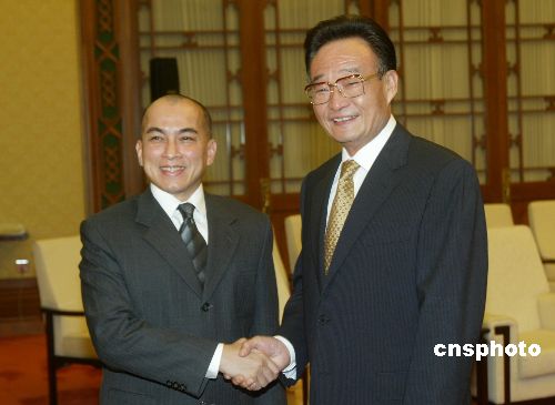 圖:吳邦國會(huì)見柬埔寨國王西哈莫尼