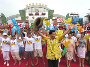 今年開(kāi)幕式主要裝備也皆為歷屆啤酒節(jié)之冠:最大的木質(zhì)城門(mén),最大的節(jié)旗,最大的啤酒桶,最大的巡游隊(duì)伍,最大的觀禮臺(tái)。其中,本屆特制的節(jié)旗長(zhǎng)寬都是十五米,代表本屆啤酒節(jié)是第十五屆。承載上萬(wàn)游客開(kāi)啟第一桶酒狂歡的巨型啤酒桶,長(zhǎng)四點(diǎn)五米,最高處直徑達(dá)三點(diǎn)五米,要七個(gè)成人手拉手才能合抱過(guò)來(lái)。巡游隊(duì)伍分為“啤酒之城”、“奧運(yùn)之城”、“浪漫琴島”、“青春活力”、“生活在青島”五個(gè)板塊,共有“可愛(ài)吉祥物”、“啤酒寶貝”、外國(guó)友人等近二千人。此外,今年的啤酒嘉年華場(chǎng)地面積也是去年的兩倍,新引進(jìn)了來(lái)自八個(gè)國(guó)家的十七臺(tái)游樂(lè)設(shè)備;三十六個(gè)參節(jié)啤酒品牌中有八個(gè)位列世界啤酒十強(qiáng)。