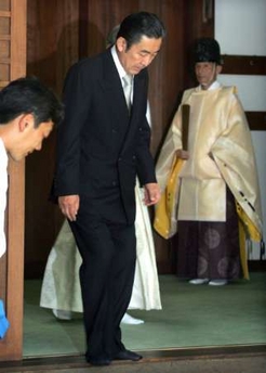 同一天,日本內(nèi)閣官員經(jīng)濟(jì)產(chǎn)業(yè)大臣中川昭一也參拜了靖國(guó)神社。