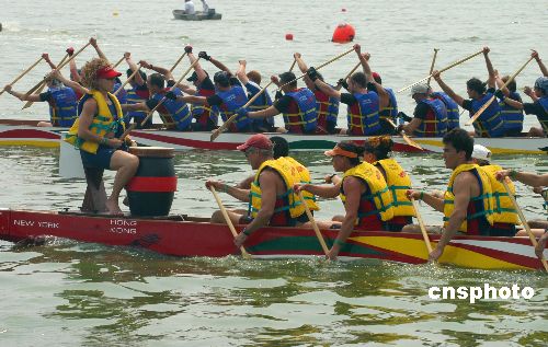 美國(guó)當(dāng)?shù)貢r(shí)間八月十三日,由香港特別行政區(qū)駐紐約辦事處主辦的第十五屆龍舟節(jié)在紐約克魯娜公園舉行,眾多“洋人”熱衷參與這項(xiàng)中國(guó)傳統(tǒng)的水上競(jìng)技。作者:龔文謨