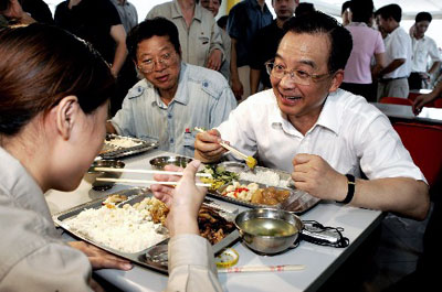 一看工人們都停下筷子聽自己講話,溫家寶趕緊招呼大家:“對不起,耽誤你們吃飯了。你們下午還要干活呢,多吃點(diǎn)!