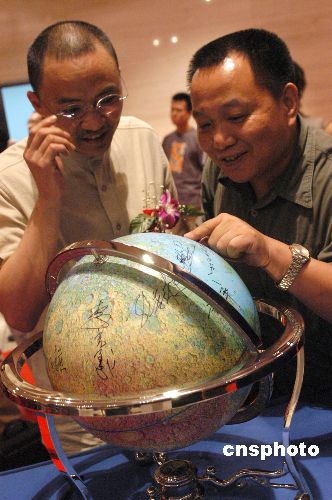 用于科研和廣大科學(xué)愛好者使用、明確標(biāo)志月球表面地形構(gòu)造和地域署名的,中國第一個(gè)“月球儀”,八月十五日在北京市中華世紀(jì)壇舉行的,中國“2005年月球探測工程標(biāo)識征集活動(dòng)啟動(dòng)儀式”發(fā)布會上亮相!霸虑騼x”由中科院月球探測中心制作。中國月球探測工程又稱“嫦娥工程”,分“繞”、“落”、“回”三期,由長征三甲火箭擔(dān)綱,分別在2007年前、2012年前、2017年前后發(fā)射!版隙鹨惶枴保–H-1)衛(wèi)星,選用東方紅3號(DFH-3)衛(wèi)星平臺。作者:鄒憲