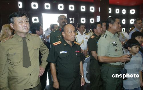 在這個中國人民抗日戰(zhàn)爭暨世界反法西斯戰(zhàn)爭勝利六十周年的日子里,坐落在盧溝橋畔宛平城內(nèi)的中國人民抗日戰(zhàn)爭紀(jì)念館莊嚴(yán)肅穆,參觀的人流穿梭不息。受中國國防部外事辦公室的邀請參觀展覽的外國駐華武官團一行在熙熙攘攘的人群中尤為顯眼,他們仔細(xì)觀看一幅幅照片、一件件文物和一處處復(fù)原景觀,認(rèn)真聽取講解人員的英語介紹。