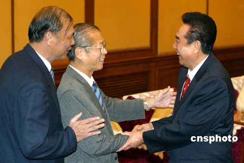 八月十六日,國務(wù)院臺灣事務(wù)辦公室主任陳云林在北京會見兩岸客貨運包機促進訪問團一行。作者:廖文靜