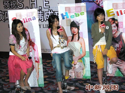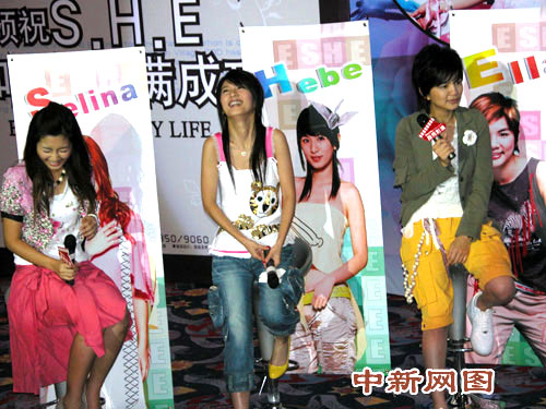 中新網(wǎng)8月17日電 臺灣偶像團體S.H.E在北京崇文門SOSHOW舉辦了“沸城之夜SHE‘奇幻樂園’演唱會新聞發(fā)布會”。為發(fā)揮SHE三位成員的“耍寶”特質(zhì),主辦方別出心裁,設(shè)置了非常吸引眼球的活動環(huán)節(jié)——“現(xiàn)場拷問SHE”。