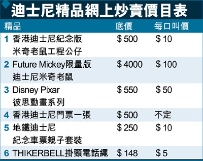 這批在網(wǎng)上的競(jìng)投者包括來(lái)自香港、北京、上海和臺(tái)灣的網(wǎng)民。香港迪斯尼公司對(duì)網(wǎng)上公然炒賣(mài)門(mén)票,指屬違法違規(guī)行為,并表示會(huì)密切留意及跟進(jìn)情況。