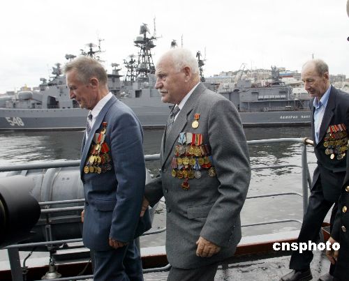 十八日傍晚,被邀參加“和平使命—2005”中俄聯(lián)合軍事演習(xí)開始儀式的中國和俄羅斯老戰(zhàn)士代表,興致勃勃地參觀太平洋艦隊基地艦艇。作者:王麗南