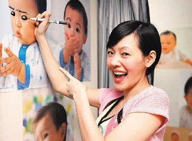 不過小S雖然已經(jīng)成為半個(gè)媽媽,但是童心絲毫未減,面對(duì)著可愛的寶寶海報(bào),她隨性的拿起麥克筆,就對(duì)海報(bào)上的寶寶“施以毒手”,幫寶寶們畫了“粗”眉毛以及“深邃”眼睛,還開心得不能自己。