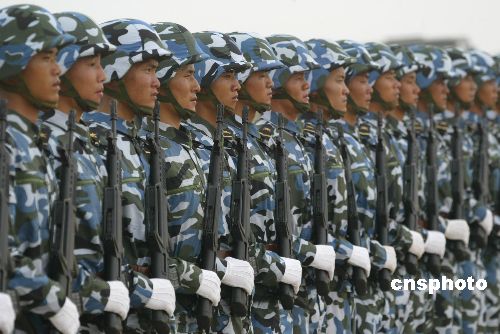 中新社青島八月二十日電(記者陶社蘭)“和平使命-二00五”中俄聯(lián)合軍事演習第二階段演練二十日在中國青島開始。中央軍委委員、中國人民解放軍總參謀長梁光烈上將在現(xiàn)場觀摩演練。