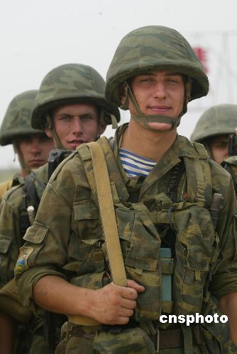 8月20日,中俄聯(lián)合軍事演習第二階段在中國青島開始,第二階段主要演練投送與展開、調(diào)整決心和組織協(xié)同,中俄雙方參演兵力近萬人。圖為參加中俄聯(lián)合軍事演習的俄羅斯空降兵在演練場上集結(jié)的情景。作者:王麗南