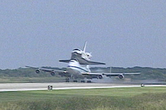 另?yè)?jù)報(bào)道,一架改進(jìn)型波音747專(zhuān)用運(yùn)輸機(jī)19日背著“發(fā)現(xiàn)”號(hào)航天飛機(jī)從美國(guó)加利福尼亞州愛(ài)德華茲空軍基地起飛,原計(jì)劃20日回到肯尼迪航天中心。但因天氣原因,“發(fā)現(xiàn)”號(hào)不得不在途中暫時(shí)歇息,推遲一天回家。