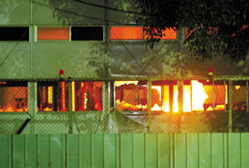 中新網8月22日電 高雄捷運岡山北機場外勞21日晚發(fā)生暴動,他們縱火燒屋并攻擊消防人員及警察,阻止消防人員救火,情況近乎失控。