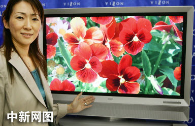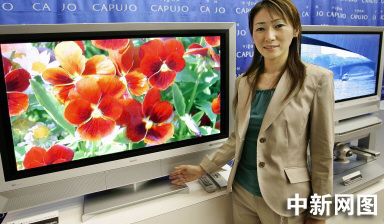 2005年8月23日,日本家用電器巨頭——三洋公司的一位職員展示著該公司最新款42英寸高清等離子電視——“PDP-42HD”。三洋公司將從10月21日起在日本國(guó)內(nèi)市場(chǎng)推出“Capujo”牌電視,每臺(tái)電視的價(jià)格預(yù)計(jì)是56萬(wàn)5千日元(5140美元)