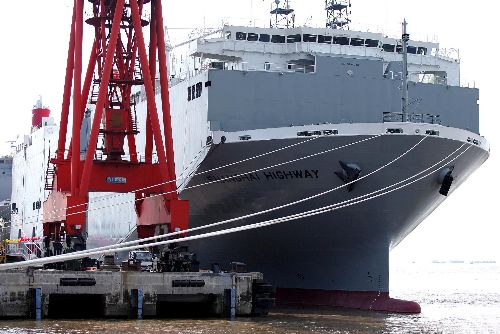 8月23日,一艘能裝載5000輛小轎車汽車滾裝船在南通中遠川崎船舶工程有限公司誕生,被命名為“上海高速(SHANGHAI HIGHWAY)號”。該巨輪是目前國內(nèi)最大、世界領(lǐng)先的汽車運輸專用船,也是中國船廠首次承接日本船東的特種船舶!吧虾8咚佟碧柸L179.99米,型寬32.20米,型深32.21米,相當(dāng)于11層樓房的高度。作者:丁曉春