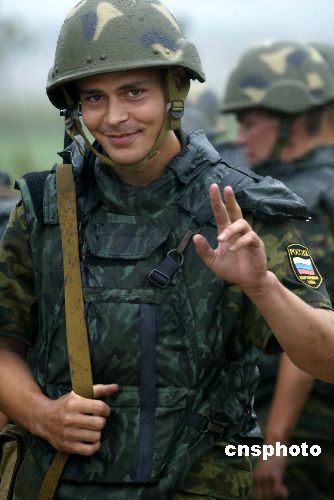 八月二十四日,“和平使命—2005”中俄聯(lián)合軍事演習(xí)兩棲登陸作戰(zhàn)實(shí)兵演練在山東半島如期進(jìn)行。圖為完成登陸任務(wù)后的俄羅斯陸戰(zhàn)隊(duì)員,盡管全身濕透,仍中國記者微笑致意。作者:王麗南