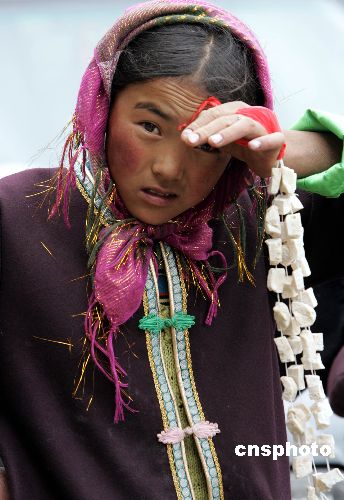 由于越來(lái)越多的游客光顧神秘的世界屋脊--西藏,當(dāng)?shù)卦絹?lái)越多的藏族人涉足旅游服務(wù)業(yè)的新領(lǐng)域。一名藏族女孩于今年旅游旺季在通往江孜古城的路旁飯店出售藏族傳統(tǒng)食品——奶塊,由于剛剛?cè)氲,不免有些害羞。(作者:任晨鳴)