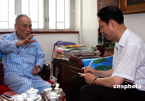 紀念抗日戰(zhàn)爭勝利六十周年,九十五歲的全國僑聯(lián)副主席、香港文化促進會會長、香港佛教文化產(chǎn)業(yè)主席莊世平接受中新社記者專訪,談抗戰(zhàn)時的經(jīng)歷。作者:鄧慶樂 梁今