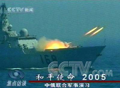 中新網(wǎng)8月26日電 據(jù)中央電視臺(tái)焦點(diǎn)訪談報(bào)道,從8月18日到8月25日,“和平使命——2005”中俄聯(lián)合軍事演習(xí)在俄羅斯的符拉迪沃斯托克和中國(guó)的山東半島及其附近海域進(jìn)行。這次軍事演習(xí)是中俄首次聯(lián)合軍演,為期八天分為三個(gè)階段。這次聯(lián)合軍事演習(xí)主要演練兩軍共同打擊國(guó)際恐怖主義、極端主義和分裂主義,應(yīng)對(duì)危機(jī)的組織協(xié)同。演習(xí)不針對(duì)第三方,不涉及第三國(guó)利益,不對(duì)任何國(guó)家構(gòu)成威脅。