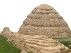 西夏王陵位于銀川市以西約25公里的賀蘭山東麓,方圓40平方公里,坐落著9座帝王陵和70多座陪葬墓。陵邑位于陵區(qū)北部,總面積約6萬平方米,四周筑有夯土城墻,城內(nèi)廣場(chǎng)、道路、院落、水井和房屋等遺跡都清晰可見,布局十分規(guī)范整齊。城內(nèi)分前、中、后三個(gè)部分,中部和后部的正中,各有一座規(guī)模宏大的殿堂,其它建筑多集中在城的前部和中部,并組成一座座封閉式庭院。