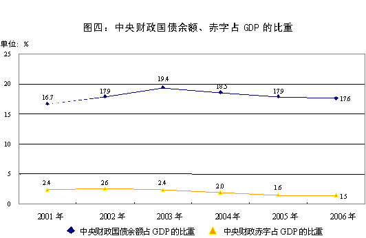 根據(jù)上述總體思路,2006年預(yù)算的主要指標(biāo)安排如下:中央財(cái)政總收入19272.04億元,比2005年增加2022.25億元,增長11.7%。其中,中央本級收入18520.3億元,比2005年增加1984.36億元,增長12%。中央財(cái)政總支出22222.04億元,比2005年增加1972.63億元,增長9.7%。其中,中央本級支出9525億元,比2005年增加749.27億元,增長8.5%;對地方稅收返還和補(bǔ)助支出12697.04億元,比2005年增加1223.36億元,增長10.7%。中央財(cái)政收支相抵,赤字2950億元,比2005年預(yù)算減少50億元,財(cái)政赤字占GDP的比重預(yù)計(jì)進(jìn)一步下降到1.5%。2006年,中央財(cái)政安排國債項(xiàng)目資金600億元,比2005年減少200億元(其中取消代地方政府發(fā)行國債100億元),同時(shí)增加中央預(yù)算內(nèi)經(jīng)常性建設(shè)投資100億元。中央財(cái)政國債余額35568億元,比2005年同口徑增加2954億元。匯總中央和地方財(cái)政收支安排,2006年全國財(cái)政收入35423.38億元,增加3795.4億元,增長12%;全國財(cái)政支出38373.38億元,增加4665.36億元,增長13.8%。