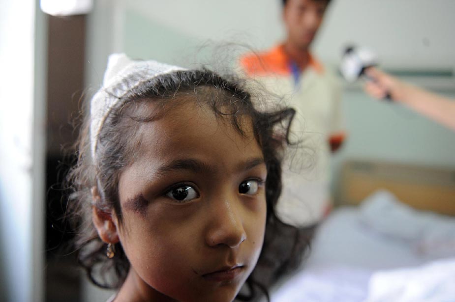 7月6日,一位名叫迪麗娜·瑪麗的少女在烏魯木齊友誼醫(yī)院接受治療,在5日晚發(fā)生的嚴(yán)重暴力犯罪事件中,她被暴力犯罪分子打傷。該事件已造成140人死亡,800多人受傷。中新社發(fā) 廖攀 攝