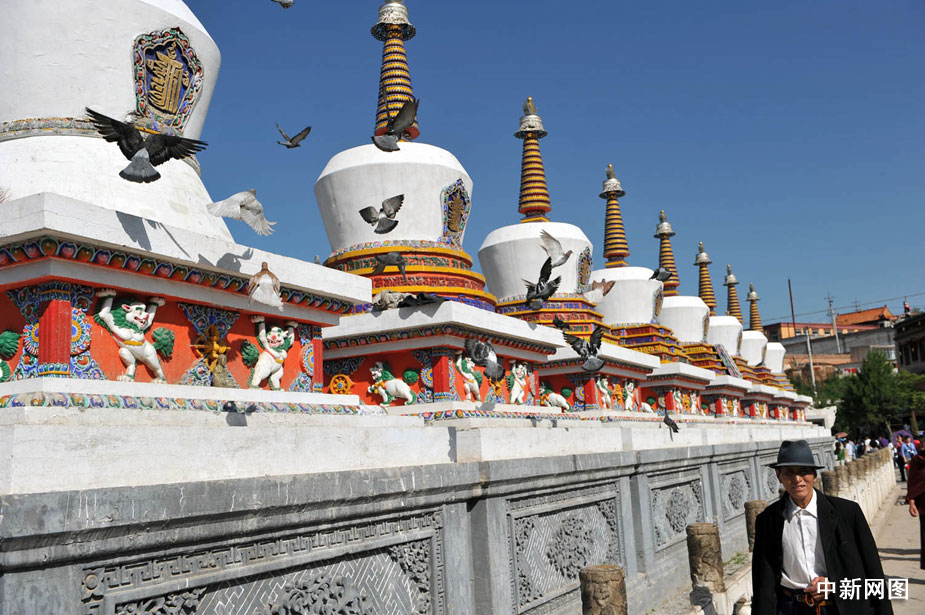 圖為塔爾寺門前的“如來八塔”。中新網(wǎng)記者 金碩 攝