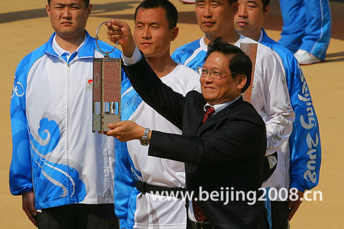中新網(wǎng)雅典3月30日電 北京奧運(yùn)會(huì)圣火交接儀式在希臘當(dāng)?shù)貢r(shí)間15時(shí)(北京時(shí)間20時(shí))在泛雅典體育場舉行。在交接儀式上,北京奧組委主席劉淇從希臘奧委會(huì)主席基里亞庫手中接過奧運(yùn)會(huì)圣火,并點(diǎn)燃了火種燈。北京奧運(yùn)會(huì)火種燈隨即將登上專機(jī)回國,并將于31日上午在北京舉行歡迎儀式。